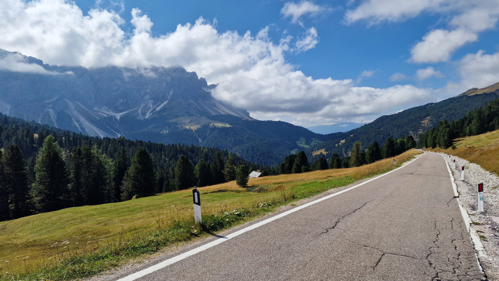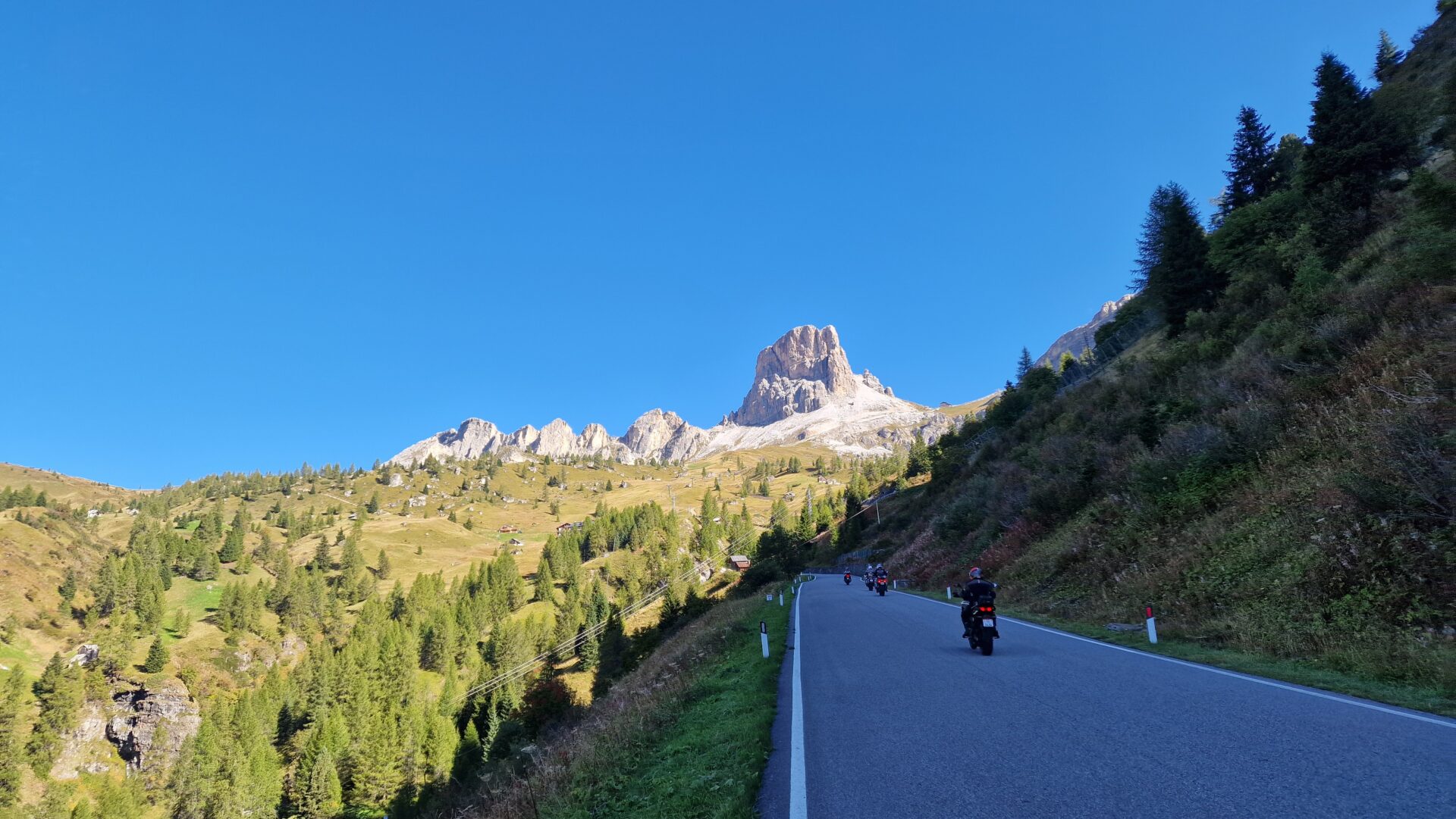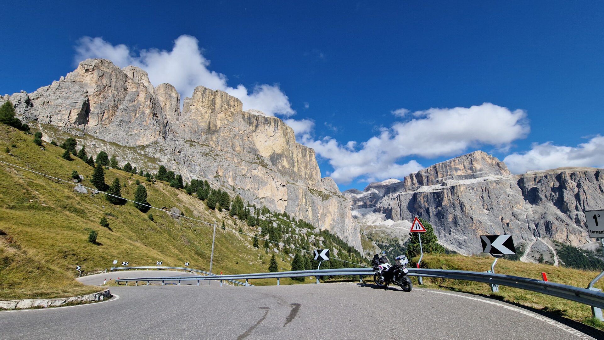 Highlights: Die Dolomiten bieten Motorradfahrern pure Kurvenlust: Highlights wie Giau, Pordoi, Sella oder Rolle liefern spektakuläre Serpentinen und grandiose Panoramen. Dazwischen sorgen ruhige Nebenstrassen und alpine Täler für perfekten Flow – eine Region, die jede Tour unvergesslich macht.😊 😉