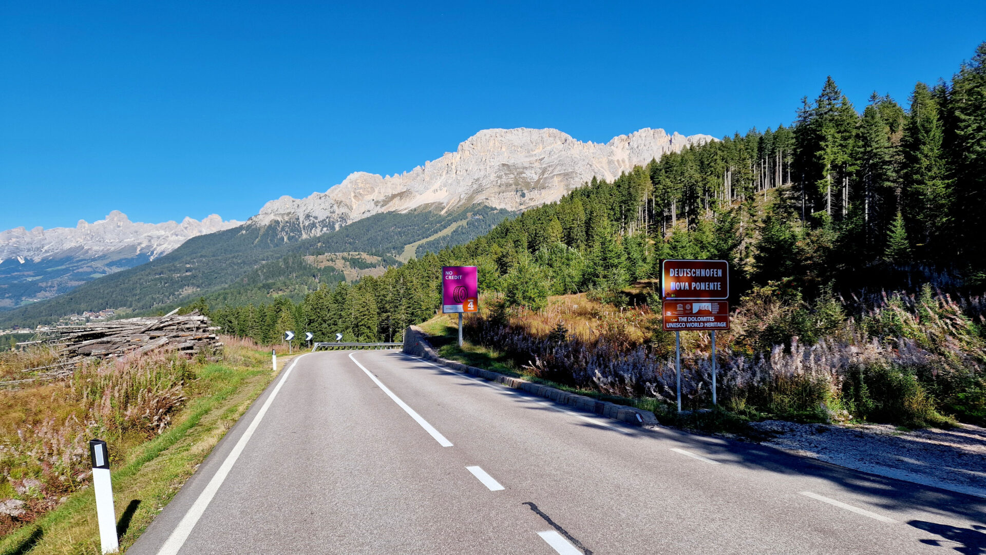 Von Obereggen führt die Tour durch sanfte Täler und abwechslungsreiche Landschaften über den Gampenpass bis nach Lana. Zurück über Terlan und Karneid erwarten dich geschwungene Strassen, endlose Kehren und herrliche Ausblicke.